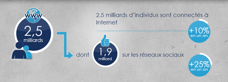 • 2,5 miliards d’individus sont connectés à internet (+10% en un an)